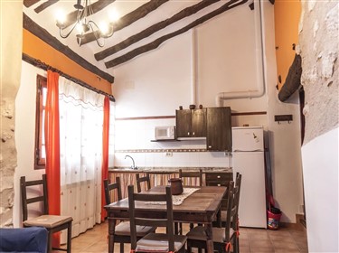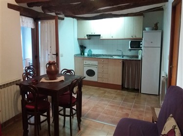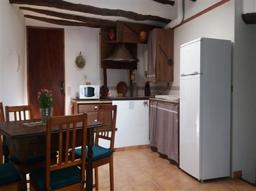 En la planta baja hay un amplio comedor con una cocina totalmente equipada, una habitación con dos camas, otra habitación con cama de matrimonio y un baño.